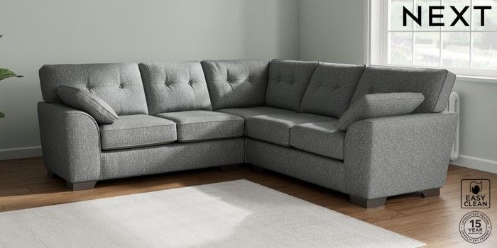 7.2.10 Stamford Buttoned Back Medium Corner Sofa - Universal Chunky Boucle Easy Clean Mid Grey Large Square Angle - Gunmetal | Made Click here to use our website with more accessibility support, for example screen readers