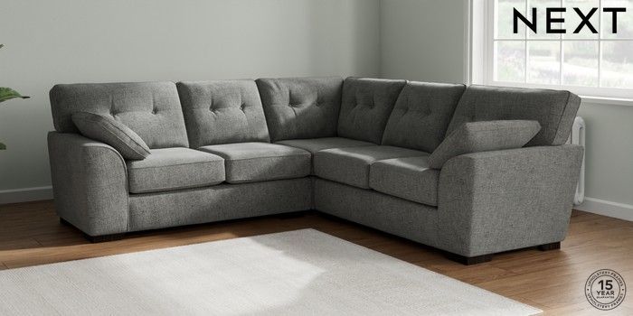 7.2.10 Stamford Buttoned Back Medium Corner Sofa - Universal Chunky Chenille Dark Grey Large Square Angle - Dark | Made Click here to use our website with more accessibility support, for example screen readers