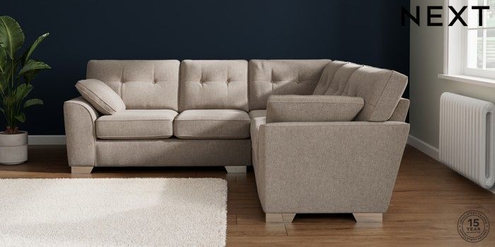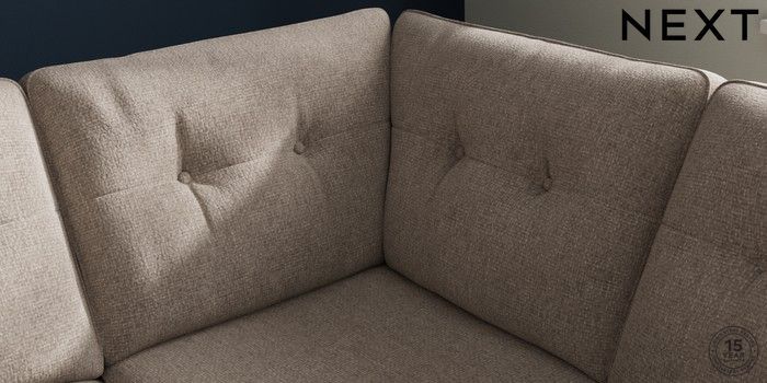 7.2.10 Stamford Buttoned Back Medium Corner Sofa - Universal Chunky Chenille Light Dove Large Square Angle - Chrome Metal | Made Click here to use our website with more accessibility support, for example screen readers