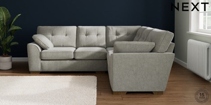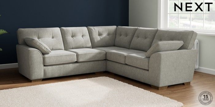 7.2.10 Stamford Buttoned Back Medium Corner Sofa - Universal Chunky Chenille Light Grey Large Square Angle - Mid | Made Click here to use our website with more accessibility support, for example screen readers