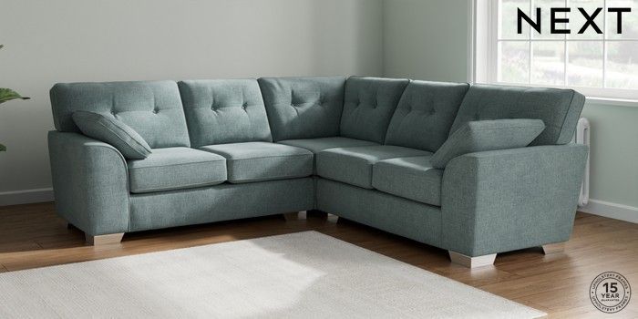7.2.10 Stamford Buttoned Back Medium Corner Sofa - Universal Chunky Chenille Light Teal Green Large Square Angle - Chrome Metal | Made Click here to use our website with more accessibility support, for example screen readers