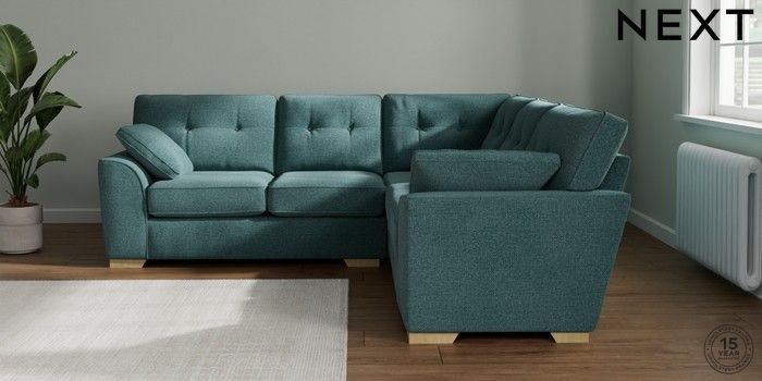 7.2.10 Stamford Buttoned Back Medium Corner Sofa - Universal Chunky Chenille Mid Teal Green Large Square Angle - Light | Made Click here to use our website with more accessibility support, for example screen readers