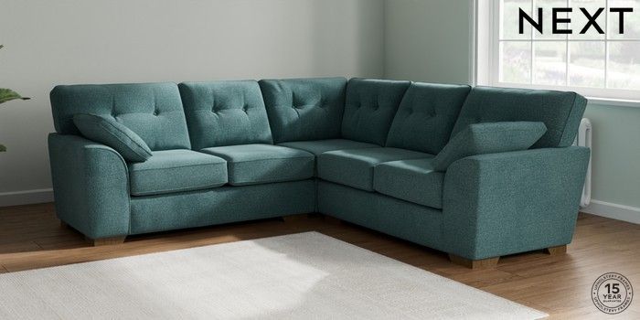 7.2.10 Stamford Buttoned Back Medium Corner Sofa - Universal Chunky Chenille Mid Teal Green Large Square Angle - Mid | Made Click here to use our website with more accessibility support, for example screen readers