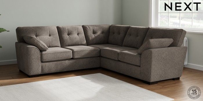 7.2.10 Stamford Buttoned Back Medium Corner Sofa - Universal Chunky Chenille Mink Brown Large Square Angle - Dark | Made Click here to use our website with more accessibility support, for example screen readers