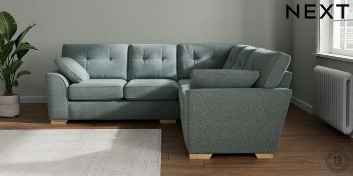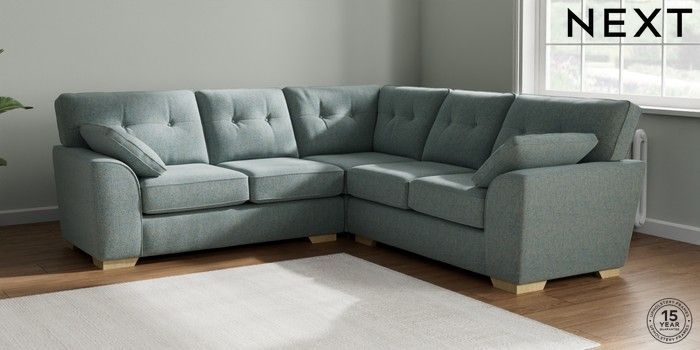 7.2.10 Stamford Buttoned Back Medium Corner Sofa - Universal Chunky Marl Mid Blue Large Square Angle - Light | Made Click here to use our website with more accessibility support, for example screen readers
