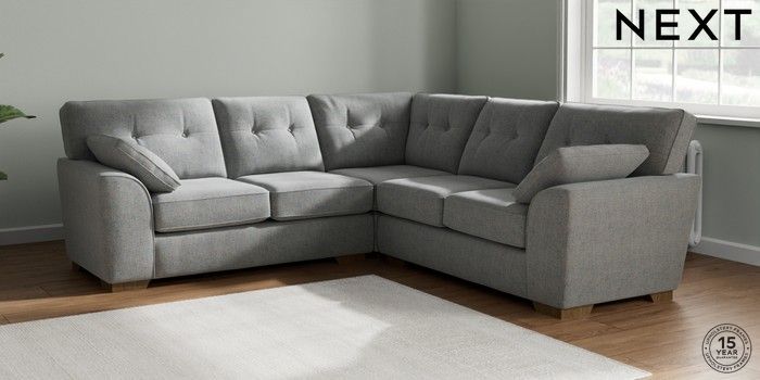7.2.10 Stamford Buttoned Back Medium Corner Sofa - Universal Chunky Marl Mid Grey Large Square Angle - Mid | Made Click here to use our website with more accessibility support, for example screen readers
