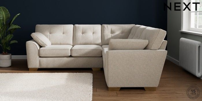 7.2.10 Stamford Buttoned Back Medium Corner Sofa - Universal Chunky Marl Oyster Large Square Angle - Brushed Brass | Made Click here to use our website with more accessibility support, for example screen readers