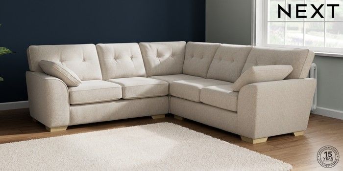 7.2.10 Stamford Buttoned Back Medium Corner Sofa - Universal Chunky Marl Oyster Large Square Angle - Light | Made Click here to use our website with more accessibility support, for example screen readers