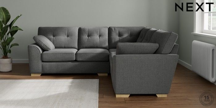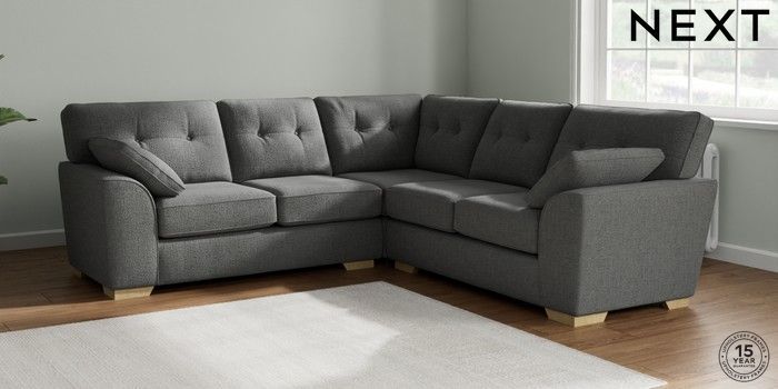 7.2.10 Stamford Buttoned Back Medium Corner Sofa - Universal Chunky Texture Dark Grey Large Square Angle - Light | Made Click here to use our website with more accessibility support, for example screen readers
