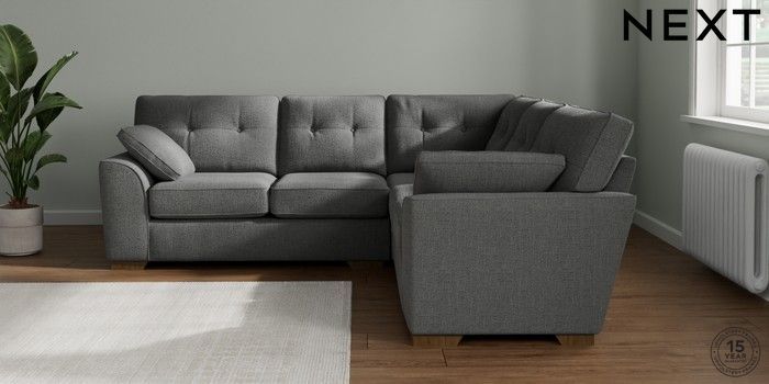 7.2.10 Stamford Buttoned Back Medium Corner Sofa - Universal Chunky Texture Dark Grey Large Square Angle - Mid | Made Click here to use our website with more accessibility support, for example screen readers