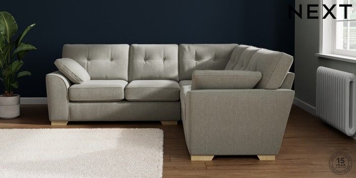 7.2.10 Stamford Buttoned Back Medium Corner Sofa - Universal Chunky Texture Dove Large Square Angle - Light | Made Click here to use our website with more accessibility support, for example screen readers