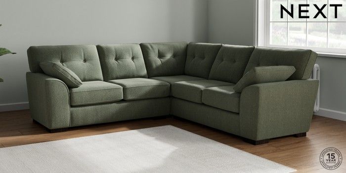 7.2.10 Stamford Buttoned Back Medium Corner Sofa - Universal Chunky Texture Mid Forest Green Large Square Angle - Dark | Made Click here to use our website with more accessibility support, for example screen readers