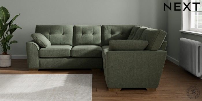 7.2.10 Stamford Buttoned Back Medium Corner Sofa - Universal Chunky Texture Mid Forest Green Large Square Angle - Mid | Made Click here to use our website with more accessibility support, for example screen readers