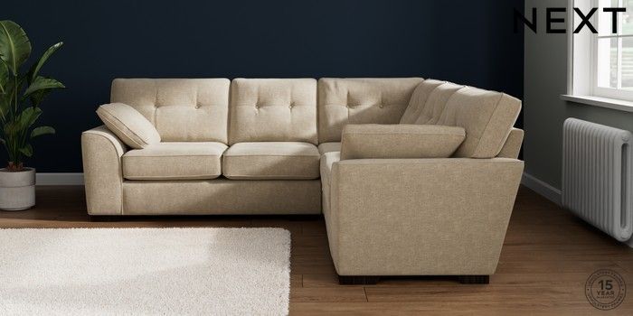7.2.10 Stamford Buttoned Back Medium Corner Sofa - Universal Chunky Weave Cream Large Square Angle - Dark | Made Click here to use our website with more accessibility support, for example screen readers