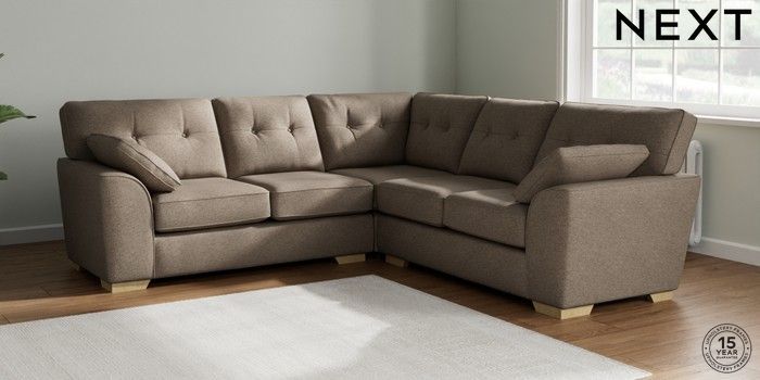 7.2.10 Stamford Buttoned Back Medium Corner Sofa - Universal Chunky Weave Dark Natural Large Square Angle - Light | Made Click here to use our website with more accessibility support, for example screen readers