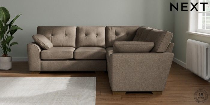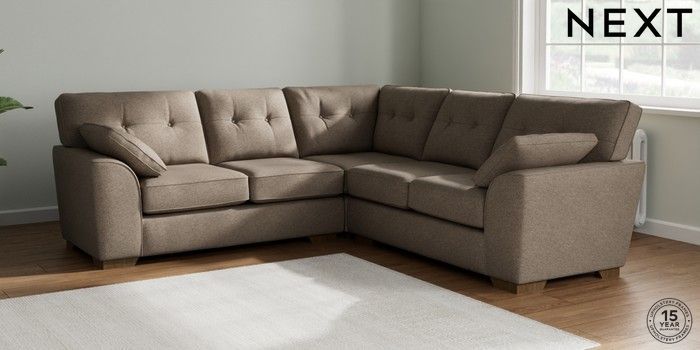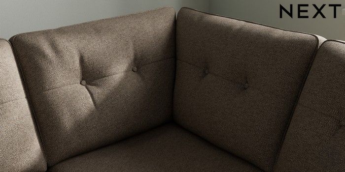 7.2.10 Stamford Buttoned Back Medium Corner Sofa - Universal Chunky Weave Dark Natural Large Square Angle - Mid | Made Click here to use our website with more accessibility support, for example screen readers