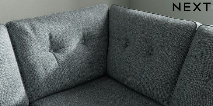 7.2.10 Stamford Buttoned Back Medium Corner Sofa - Universal Chunky Weave Mid Blue Large Square Angle - Dark | Made Click here to use our website with more accessibility support, for example screen readers