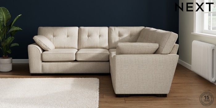 7.2.10 Stamford Buttoned Back Medium Corner Sofa - Universal Chunky Weave Mid Natural Large Square Angle - Dark | Made Click here to use our website with more accessibility support, for example screen readers