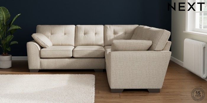 7.2.10 Stamford Buttoned Back Medium Corner Sofa - Universal Chunky Weave Mid Natural Large Square Angle - Gunmetal | Made Click here to use our website with more accessibility support, for example screen readers