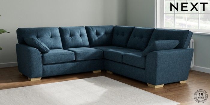7.2.10 Stamford Buttoned Back Medium Corner Sofa - Universal Cotswold Chenille Dark Blue Large Square Angle - Light | Made Click here to use our website with more accessibility support, for example screen readers
