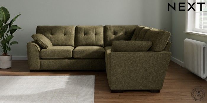 7.2.10 Stamford Buttoned Back Medium Corner Sofa - Universal Cotswold Chenille Dark Green Large Square Angle - Dark | Made Click here to use our website with more accessibility support, for example screen readers
