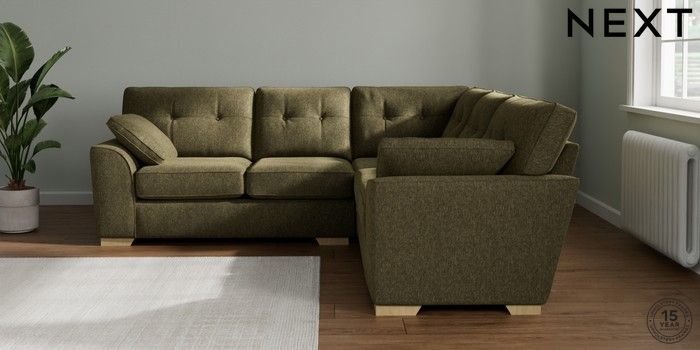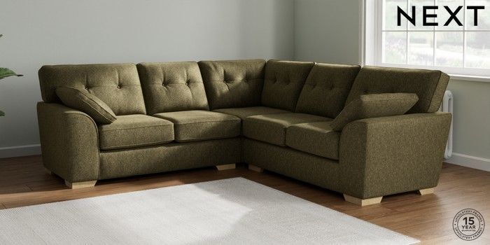 7.2.10 Stamford Buttoned Back Medium Corner Sofa - Universal Cotswold Chenille Dark Green Large Square Angle - Light | Made Click here to use our website with more accessibility support, for example screen readers