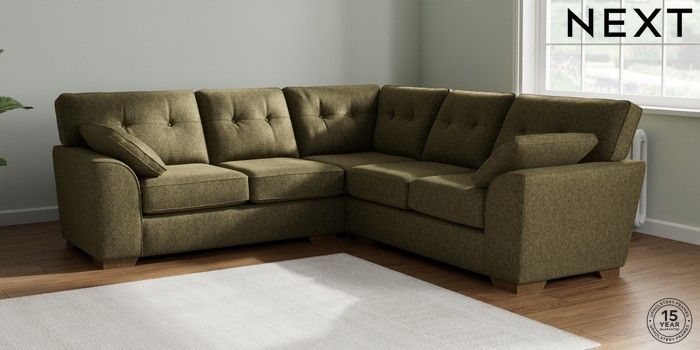 7.2.10 Stamford Buttoned Back Medium Corner Sofa - Universal Cotswold Chenille Dark Green Large Square Angle - Mid | Made Click here to use our website with more accessibility support, for example screen readers