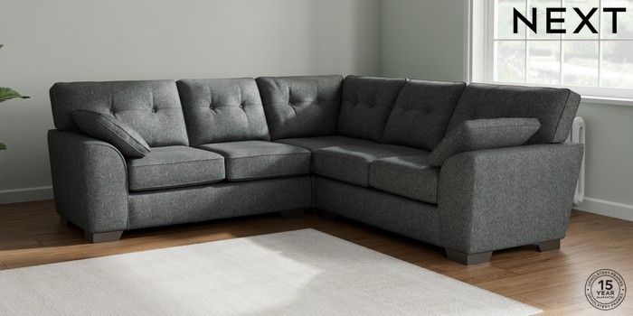 7.2.10 Stamford Buttoned Back Medium Corner Sofa - Universal Cotswold Chenille Dark Grey Large Square Angle - Gunmetal | Made Click here to use our website with more accessibility support, for example screen readers