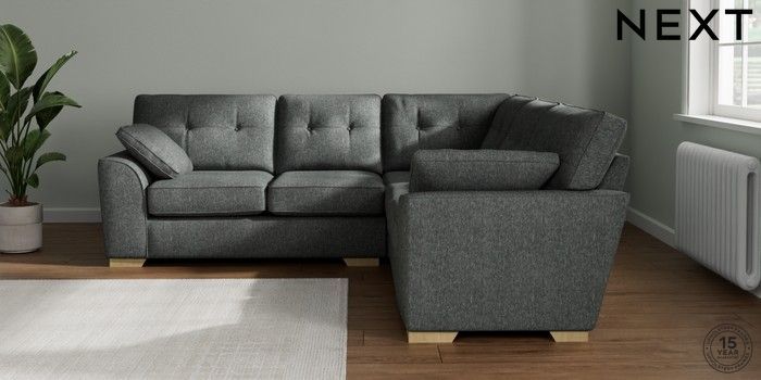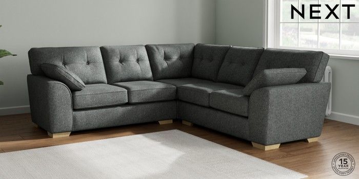 7.2.10 Stamford Buttoned Back Medium Corner Sofa - Universal Cotswold Chenille Dark Grey Large Square Angle - Light | Made Click here to use our website with more accessibility support, for example screen readers