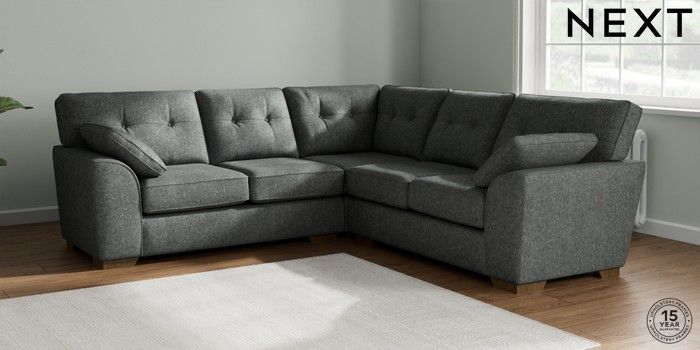 7.2.10 Stamford Buttoned Back Medium Corner Sofa - Universal Cotswold Chenille Dark Grey Large Square Angle - Mid | Made Click here to use our website with more accessibility support, for example screen readers