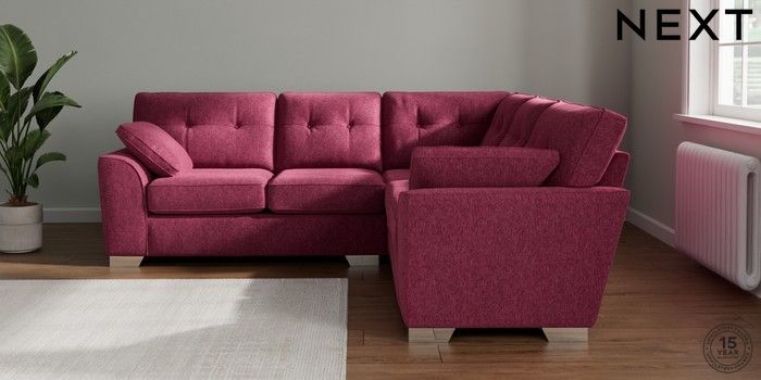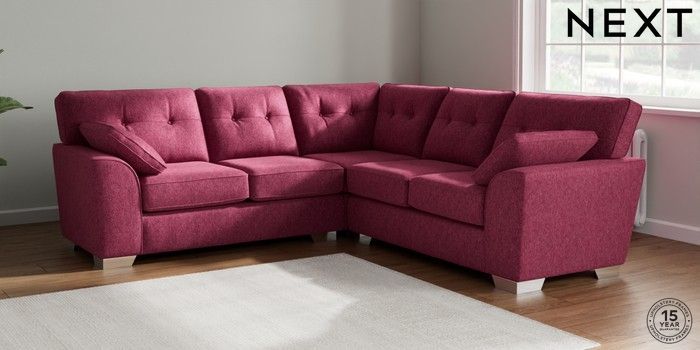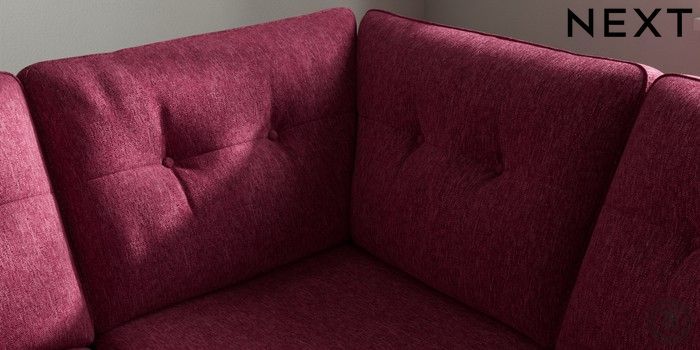 7.2.10 Stamford Buttoned Back Medium Corner Sofa - Universal Cotswold Chenille Dark Raspberry Pink Large Square Angle - Chrome Metal | Made Click here to use our website with more accessibility support, for example screen readers
