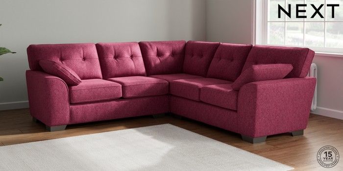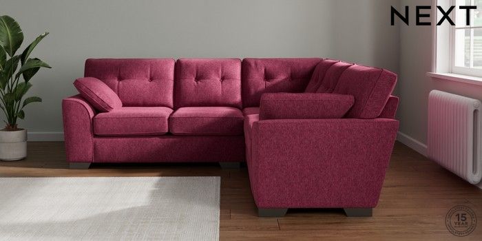 7.2.10 Stamford Buttoned Back Medium Corner Sofa - Universal Cotswold Chenille Dark Raspberry Pink Large Square Angle - Gunmetal | Made Click here to use our website with more accessibility support, for example screen readers