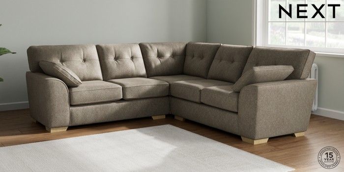 7.2.10 Stamford Buttoned Back Medium Corner Sofa - Universal Cotswold Chenille Mid Mink Brown Large Square Angle - Light | Made Click here to use our website with more accessibility support, for example screen readers
