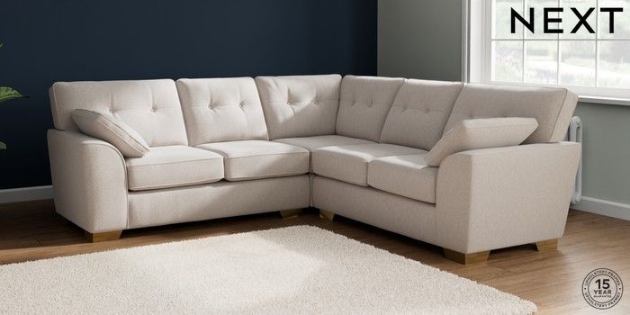 7.2.10 Stamford Buttoned Back Medium Corner Sofa - Universal Cotswold Chenille Oyster Large Square Angle - Brushed Brass | Made Click here to use our website with more accessibility support, for example screen readers