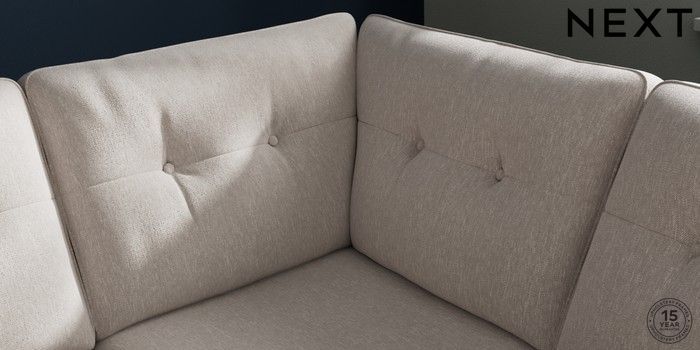 7.2.10 Stamford Buttoned Back Medium Corner Sofa - Universal Cotswold Chenille Oyster Large Square Angle - Light | Made Click here to use our website with more accessibility support, for example screen readers