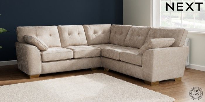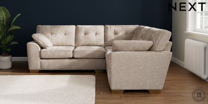 7.2.10 Stamford Buttoned Back Medium Corner Sofa - Universal Distressed Velour Mid Natural Large Square Angle - Brushed Brass | Made Click here to use our website with more accessibility support, for example screen readers