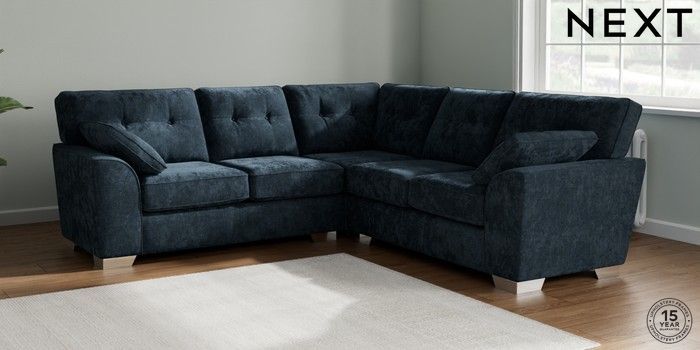 7.2.10 Stamford Buttoned Back Medium Corner Sofa - Universal Distressed Velour Midnight Blue Large Square Angle - Chrome Metal | Made Click here to use our website with more accessibility support, for example screen readers