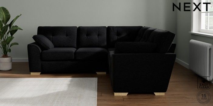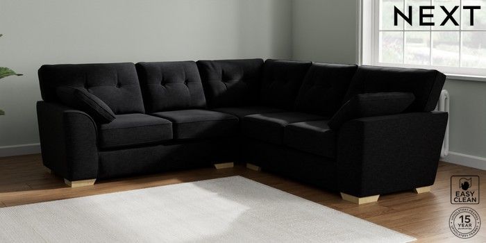 7.2.10 Stamford Buttoned Back Medium Corner Sofa - Universal Fine Chenille Easy Clean Black Large Square Angle - Light | Made Click here to use our website with more accessibility support, for example screen readers