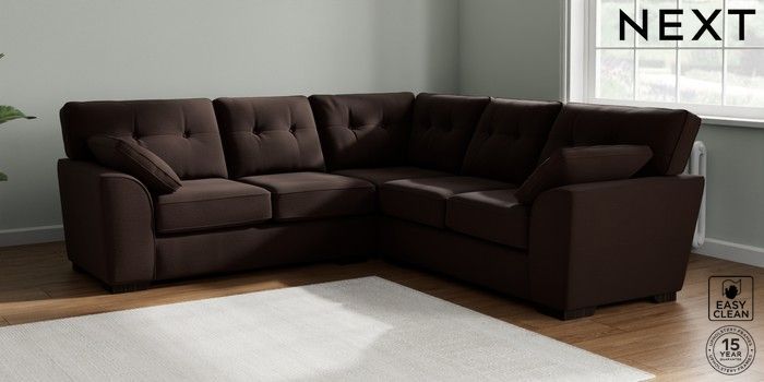 7.2.10 Stamford Buttoned Back Medium Corner Sofa - Universal Fine Chenille Easy Clean Chocolate Brown Large Square Angle - Dark | Made Click here to use our website with more accessibility support, for example screen readers