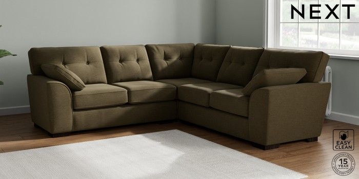 7.2.10 Stamford Buttoned Back Medium Corner Sofa - Universal Fine Chenille Easy Clean Dark Moss Green Large Square Angle - Dark | Made Click here to use our website with more accessibility support, for example screen readers