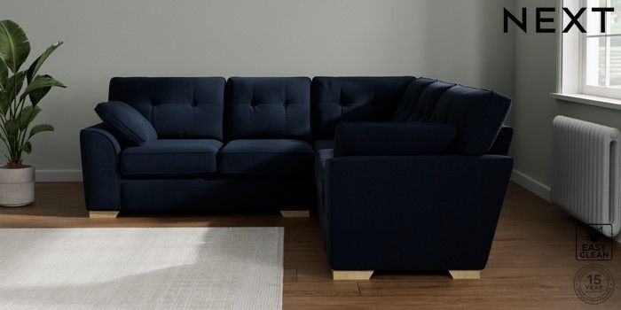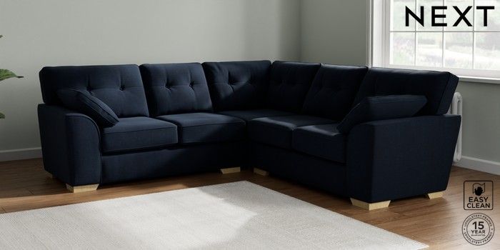 7.2.10 Stamford Buttoned Back Medium Corner Sofa - Universal Fine Chenille Easy Clean Dark Navy Blue Large Square Angle - Light | Made Click here to use our website with more accessibility support, for example screen readers