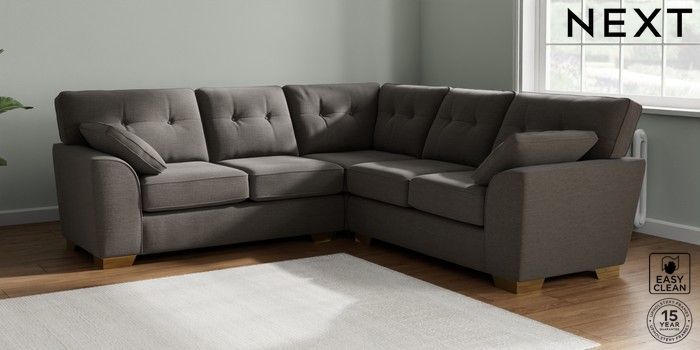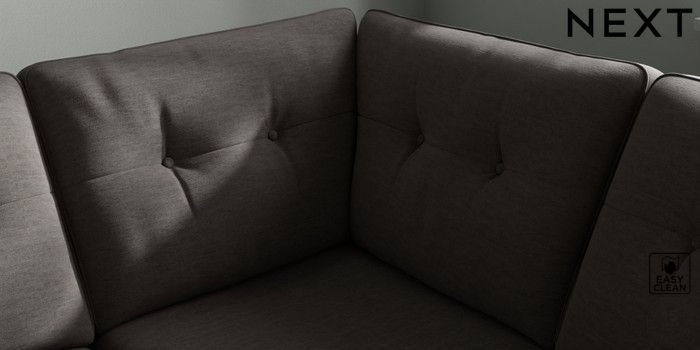 7.2.10 Stamford Buttoned Back Medium Corner Sofa - Universal Fine Chenille Easy Clean Dark Smoke Grey Large Square Angle - Brushed Brass | Made Click here to use our website with more accessibility support, for example screen readers