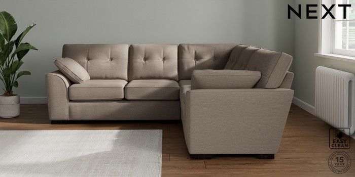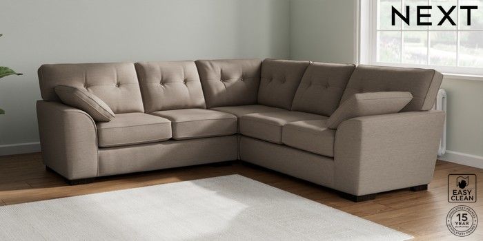 7.2.10 Stamford Buttoned Back Medium Corner Sofa - Universal Fine Chenille Easy Clean Mid Taupe Brown Large Square Angle - Dark | Made Click here to use our website with more accessibility support, for example screen readers