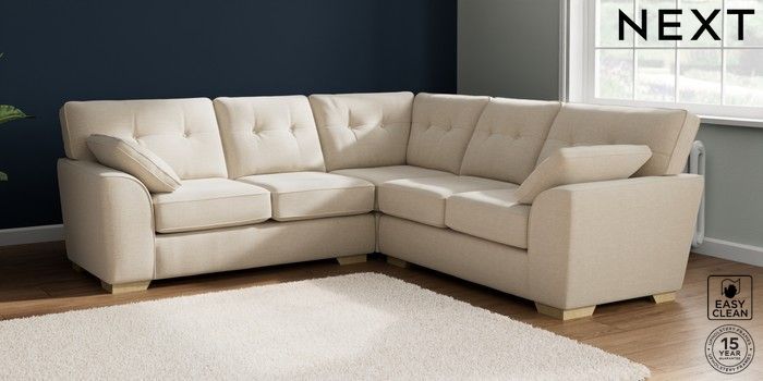 7.2.10 Stamford Buttoned Back Medium Corner Sofa - Universal Fine Chenille Easy Clean Oyster Large Square Angle - Light | Made Click here to use our website with more accessibility support, for example screen readers