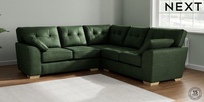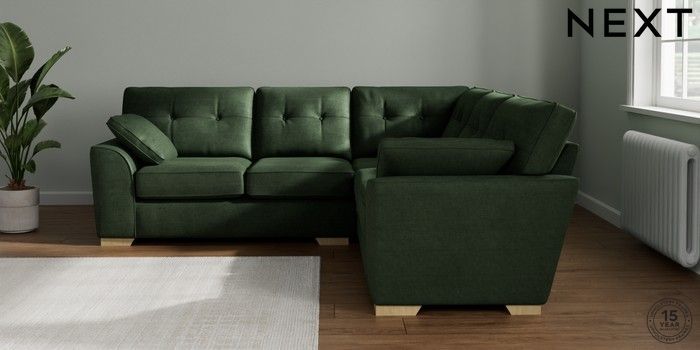 7.2.10 Stamford Buttoned Back Medium Corner Sofa - Universal Luxe Chenille Dark Green Large Square Angle - Light | Made Click here to use our website with more accessibility support, for example screen readers