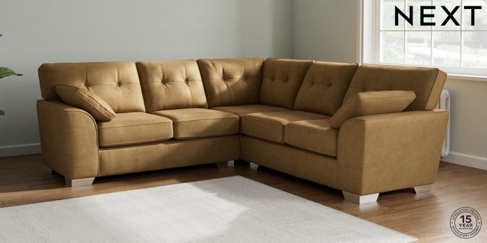 7.2.10 Stamford Buttoned Back Medium Corner Sofa - Universal Luxe Chenille Honey Yellow Large Square Angle - Chrome Metal | Made Click here to use our website with more accessibility support, for example screen readers