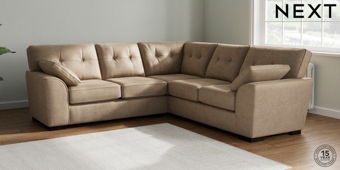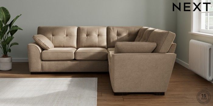 7.2.10 Stamford Buttoned Back Medium Corner Sofa - Universal Luxe Chenille Mid Camel Beige Large Square Angle - Dark | Made Click here to use our website with more accessibility support, for example screen readers