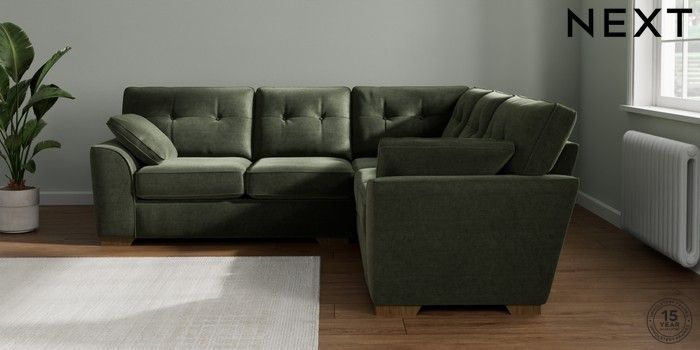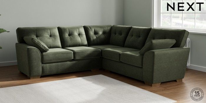 7.2.10 Stamford Buttoned Back Medium Corner Sofa - Universal Luxe Chenille Mid Green Large Square Angle - Mid | Made Click here to use our website with more accessibility support, for example screen readers