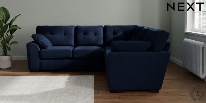 7.2.10 Stamford Buttoned Back Medium Corner Sofa - Universal Luxe Chenille Navy Blue Large Square Angle - Dark | Made Click here to use our website with more accessibility support, for example screen readers
