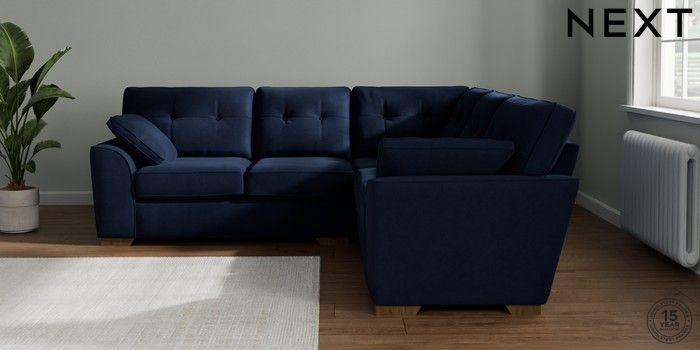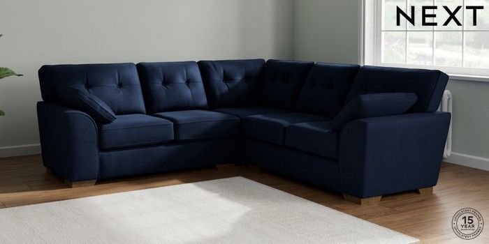 7.2.10 Stamford Buttoned Back Medium Corner Sofa - Universal Luxe Chenille Navy Blue Large Square Angle - Mid | Made Click here to use our website with more accessibility support, for example screen readers